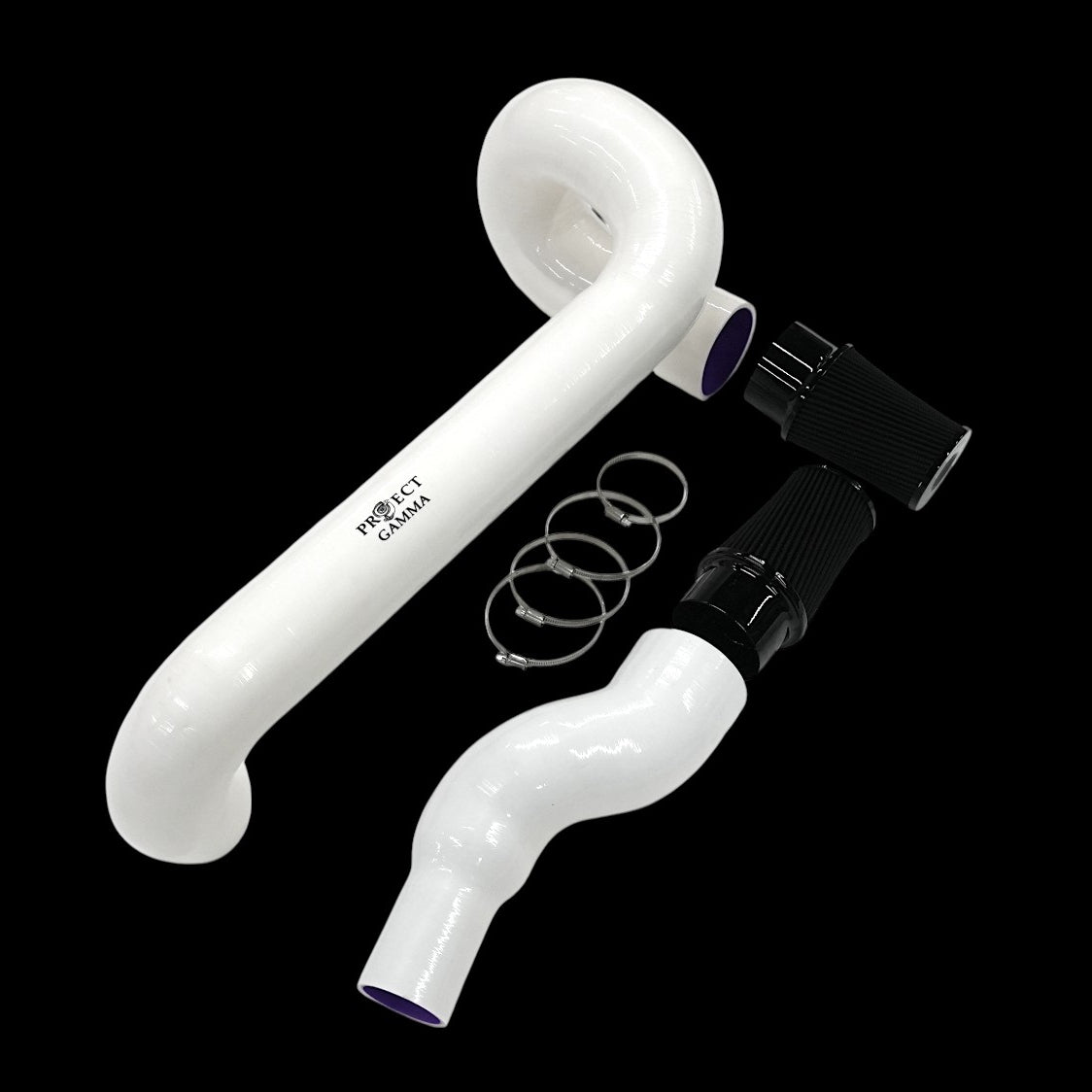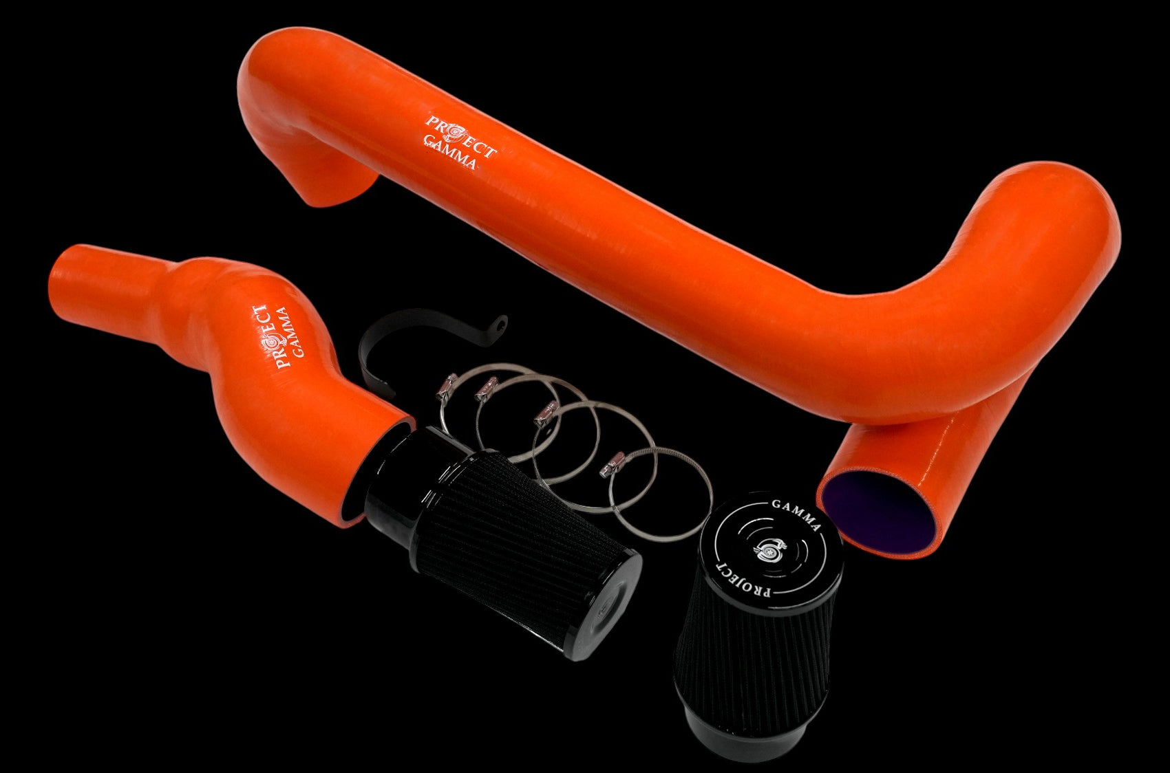 Project Gamma intakes feature a 4 layer of reinforced ply silicone with oil-resistant lining and aluminum hose connections to improve airflow, increase horsepower, and add style to your engine bay.