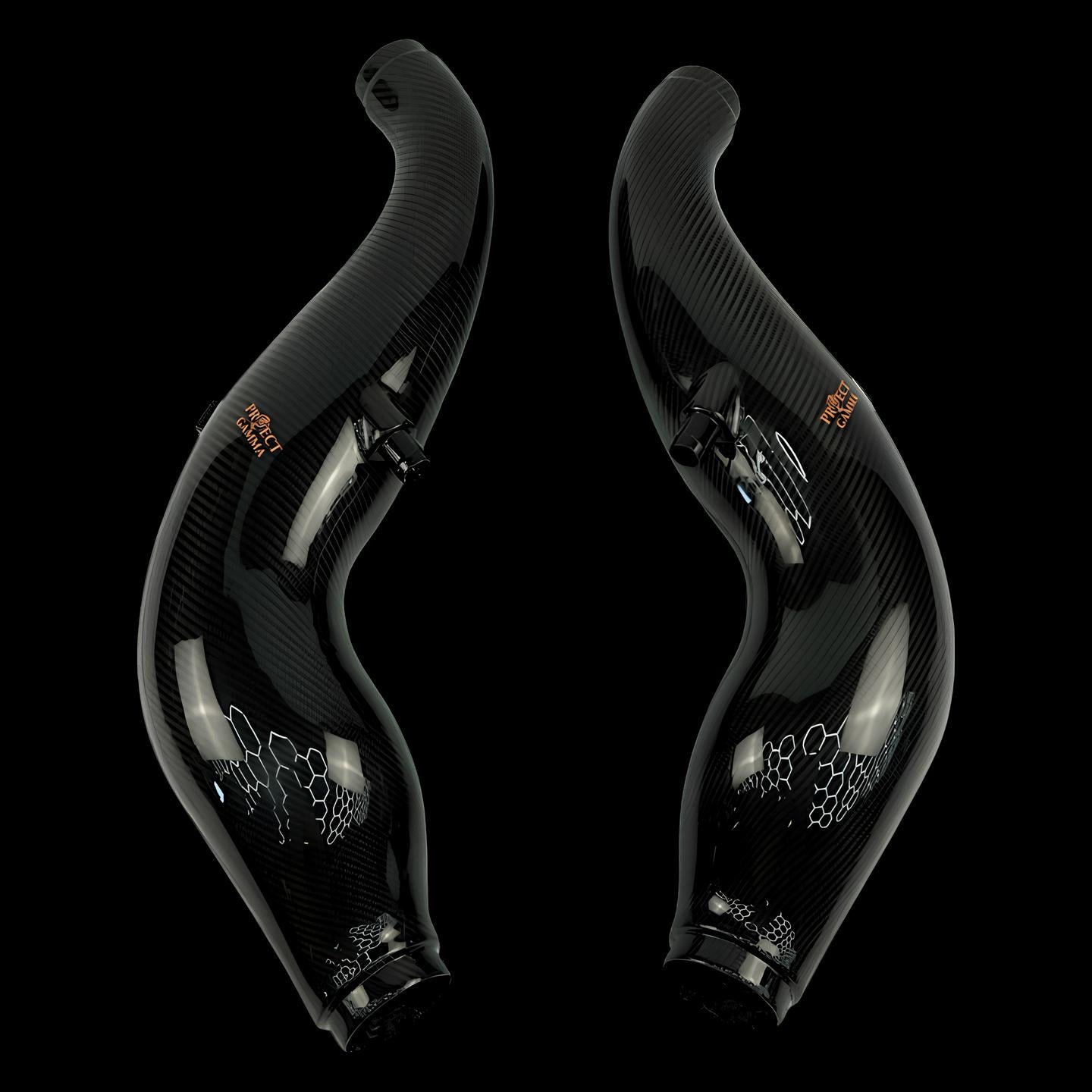 Project Gamma intakes for the AMG GT models feature a highly durable carbon fiber and carbon kevlar construction. Our carbon intakes are a 2-piece system with a 4 layer reinforced ply silicone extension that channels the airflow straight form behind the grills. This presents an improved airflo...