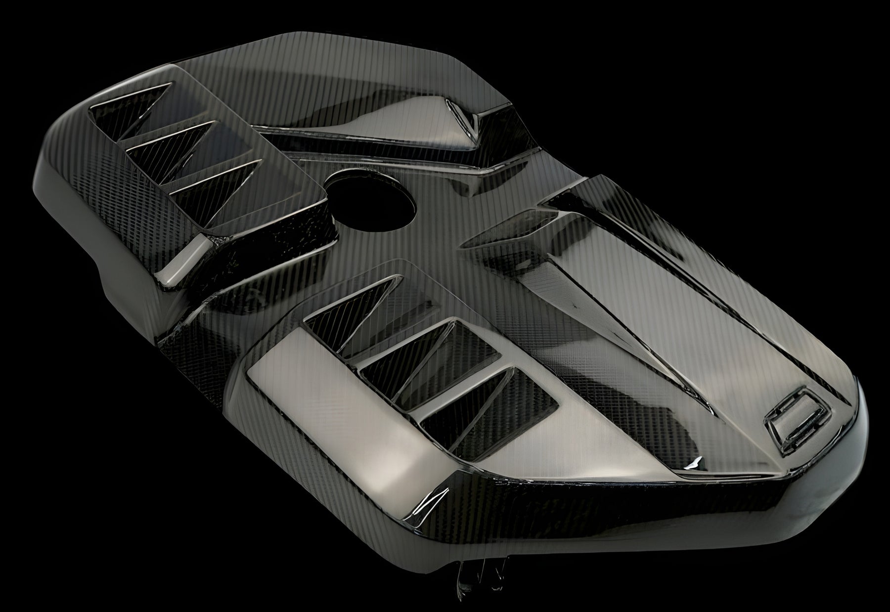 Elevate the look of your engine bay with our new carbon fiber engine cover. This is a direct replacement for the OEM engine cover that helps complete that carbon fiber look under the hood.
