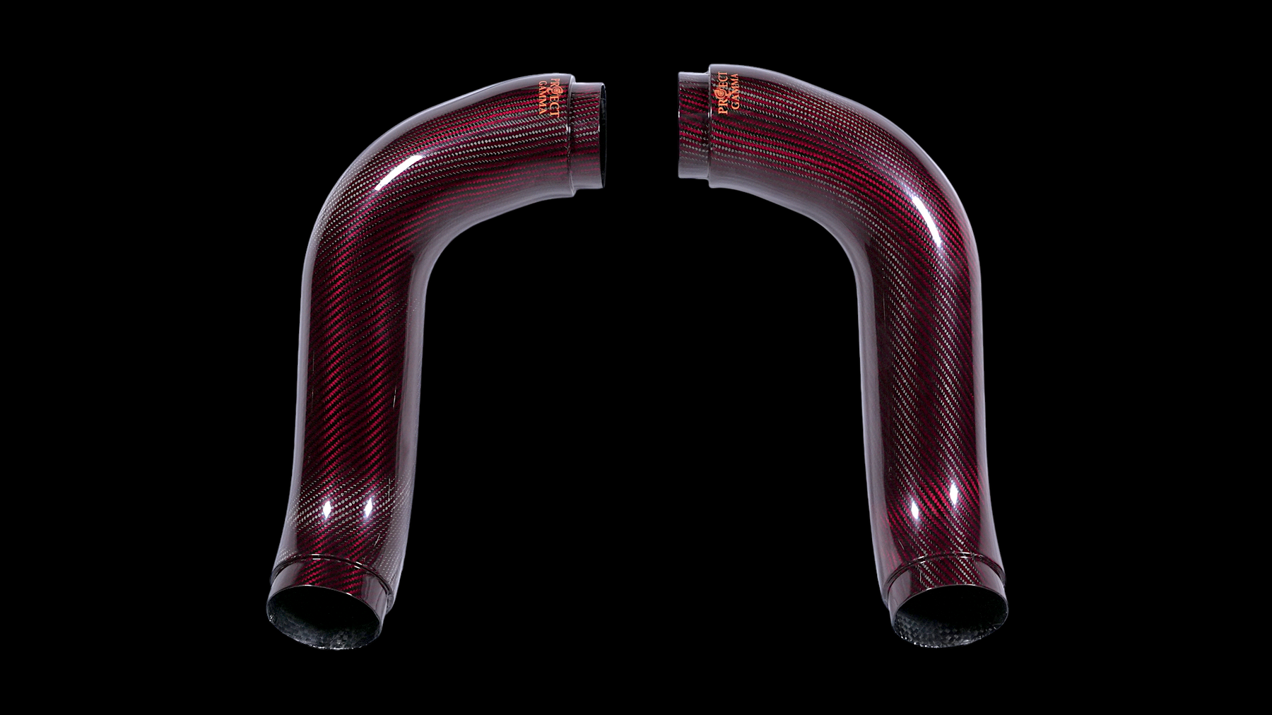 Project Gamma intakes for the M5 and M8 models feature a highly durable carbon fiber and carbon Kevlar construction. Our BMW M5 F90 carbon fiber & intakes are a 2 piece system with a 4-layer reinforced ply silicone extension that channels the straight airflow from behind the grills. This presents improved airflow and horsepower figures when compared to the stock intake system. An inner diameter of 3.5 inches is maintained throughout the intake, allowing for maximum airflow with the help of the silicone’s flexibility.