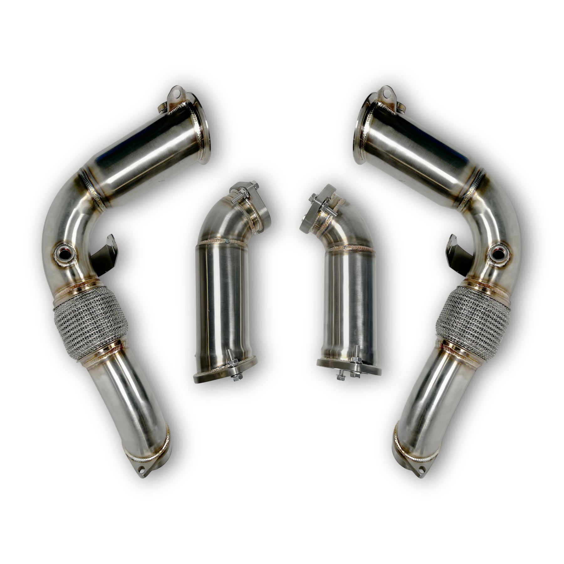 ******The product you see has been Ceramic Coated. To protect your engine bay from possible heat damage please purchase our Ceramic Coating add-on before checking out, otherwise your downpipes will just come polished.*******